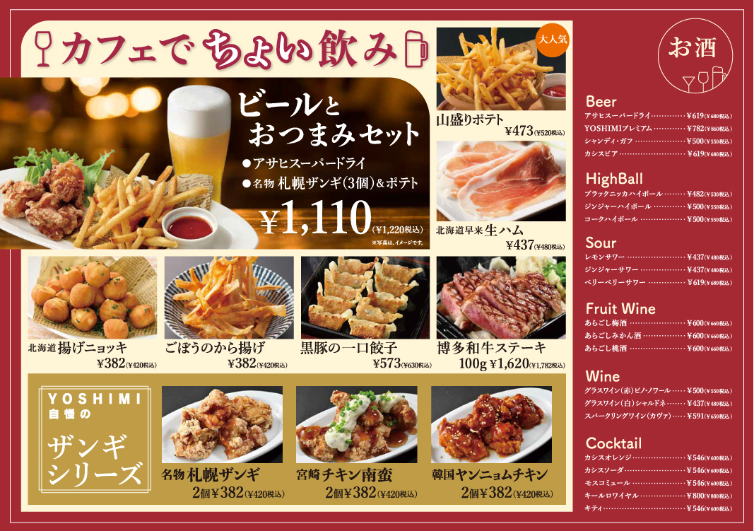 CAFE YOSHIMI は大通駅と札幌駅をつなぐ地下歩行空間直結の赤れんがテラス地下1Fにあるとっても便利なお店。