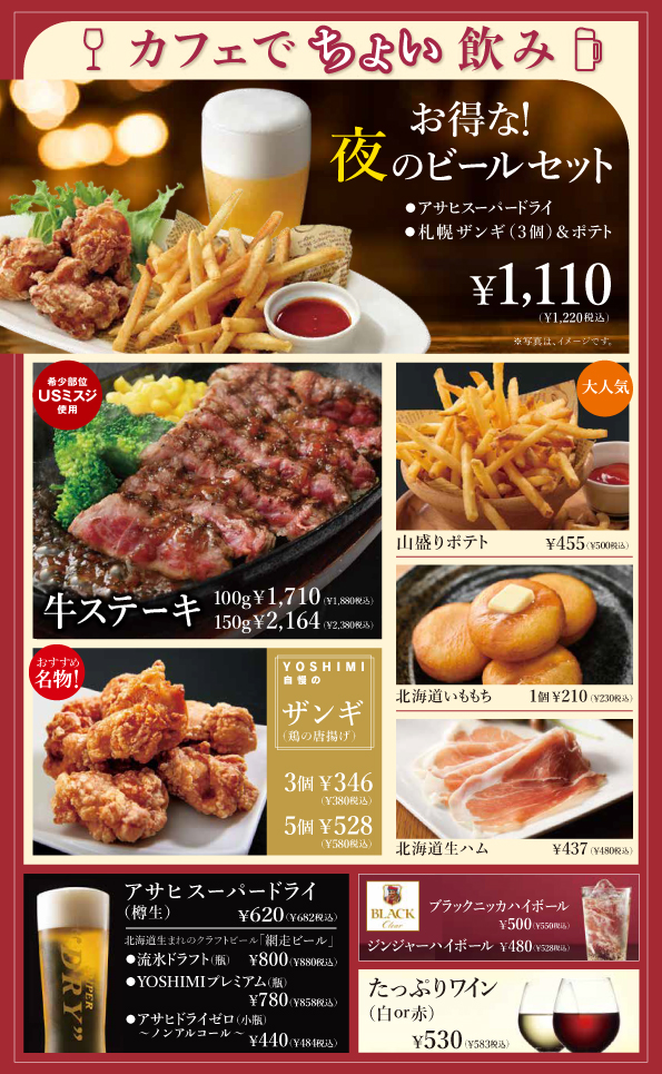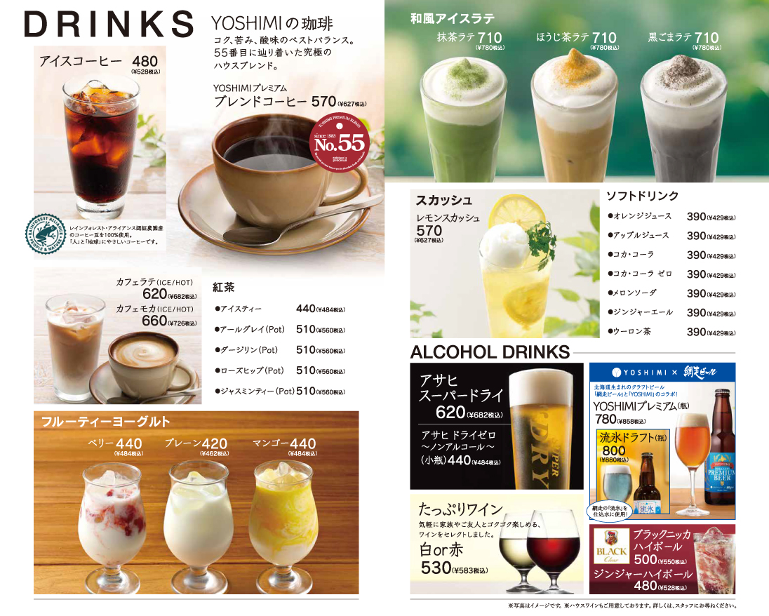 ドリンクメニューなどYOSHIMIを代表する料理を