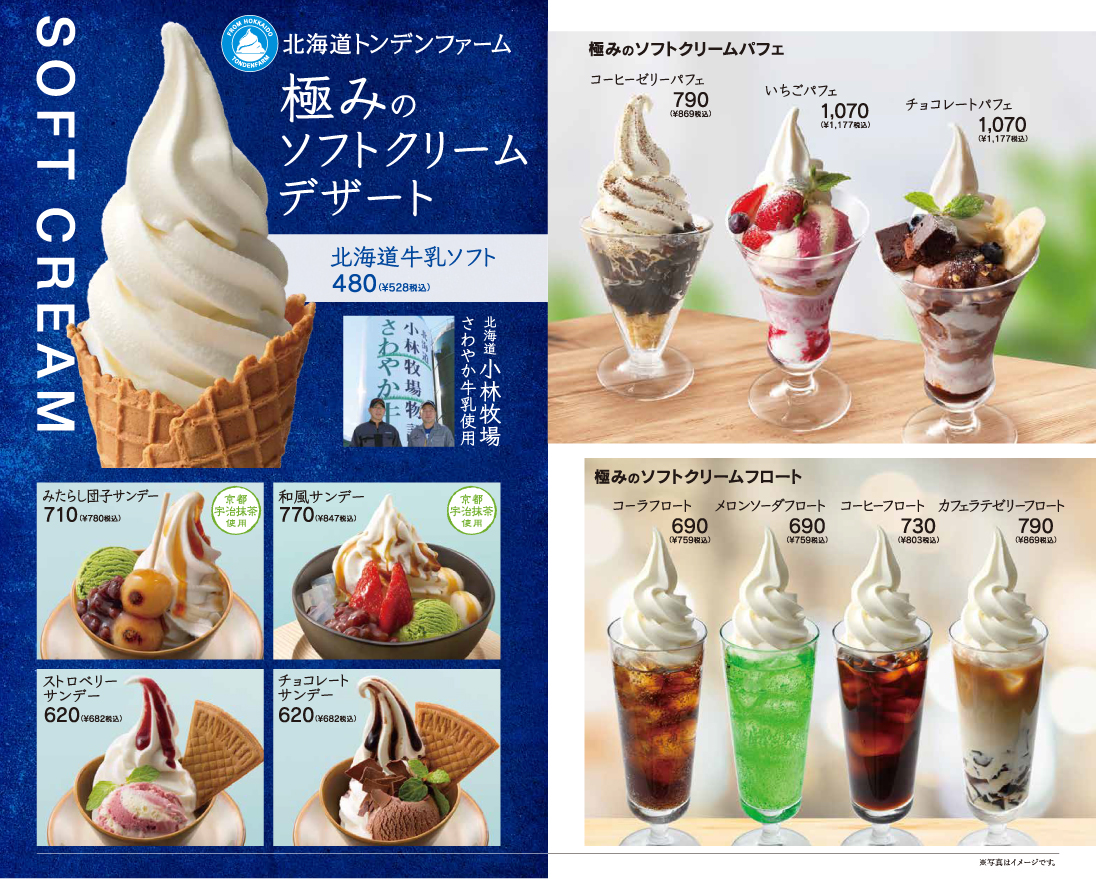 中心に豊富なデザートメニューや
